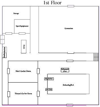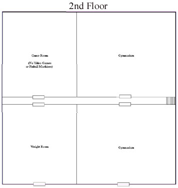Oasis is a two floor building with a basement, in which is located janitorial equipment, plumbing, electrical junctions, furnace and leftover supplies. On the second floor, two fire escapes lead down to the first floor and are located on the south side of the building. |